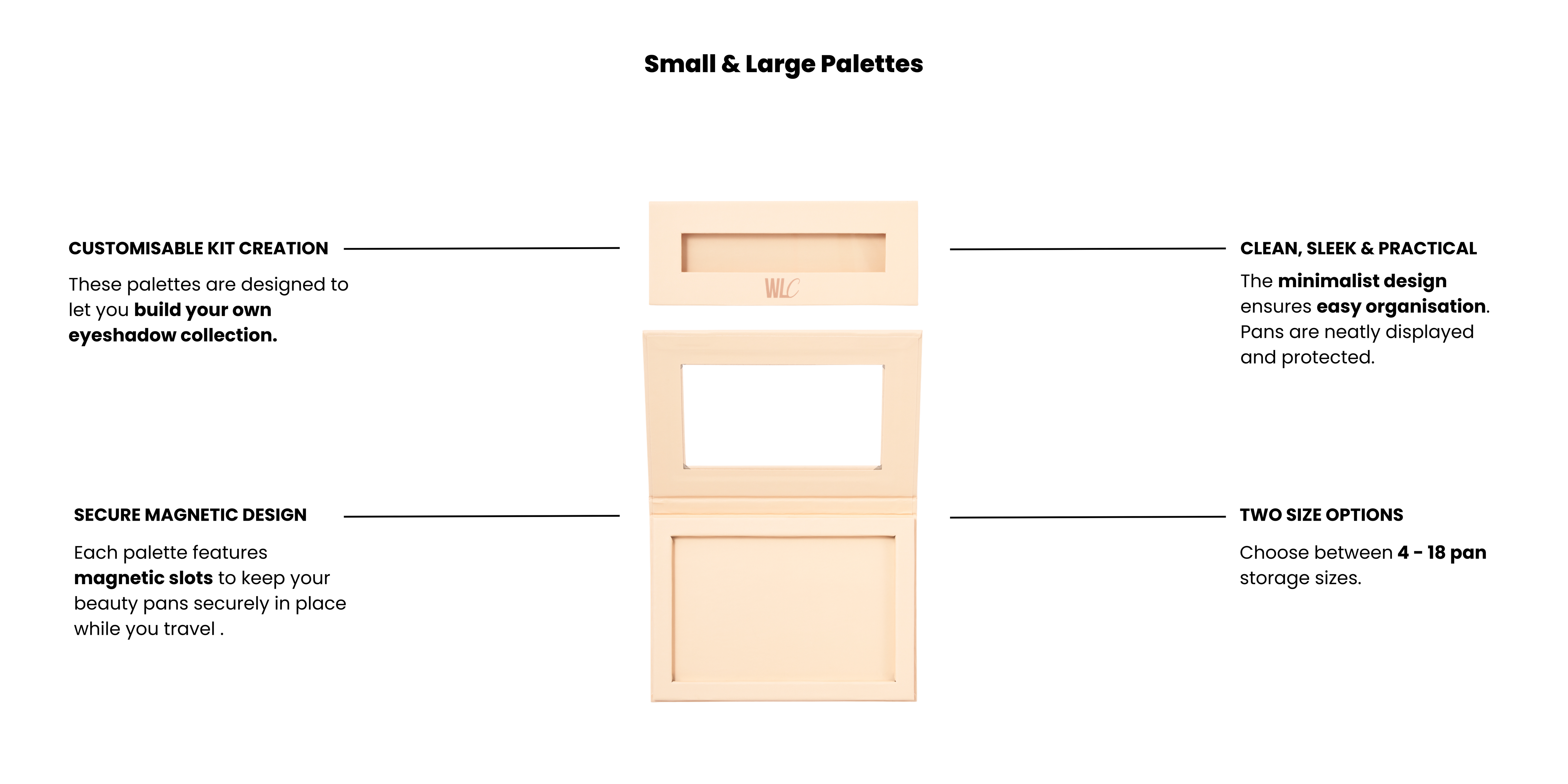 Create your own customised makeup collection with our Small Empty Magnetic Palette. Designed to hold 4 of your favourite With Love Cosmetics pressed glitters, it keeps your shades organised and ready to use.