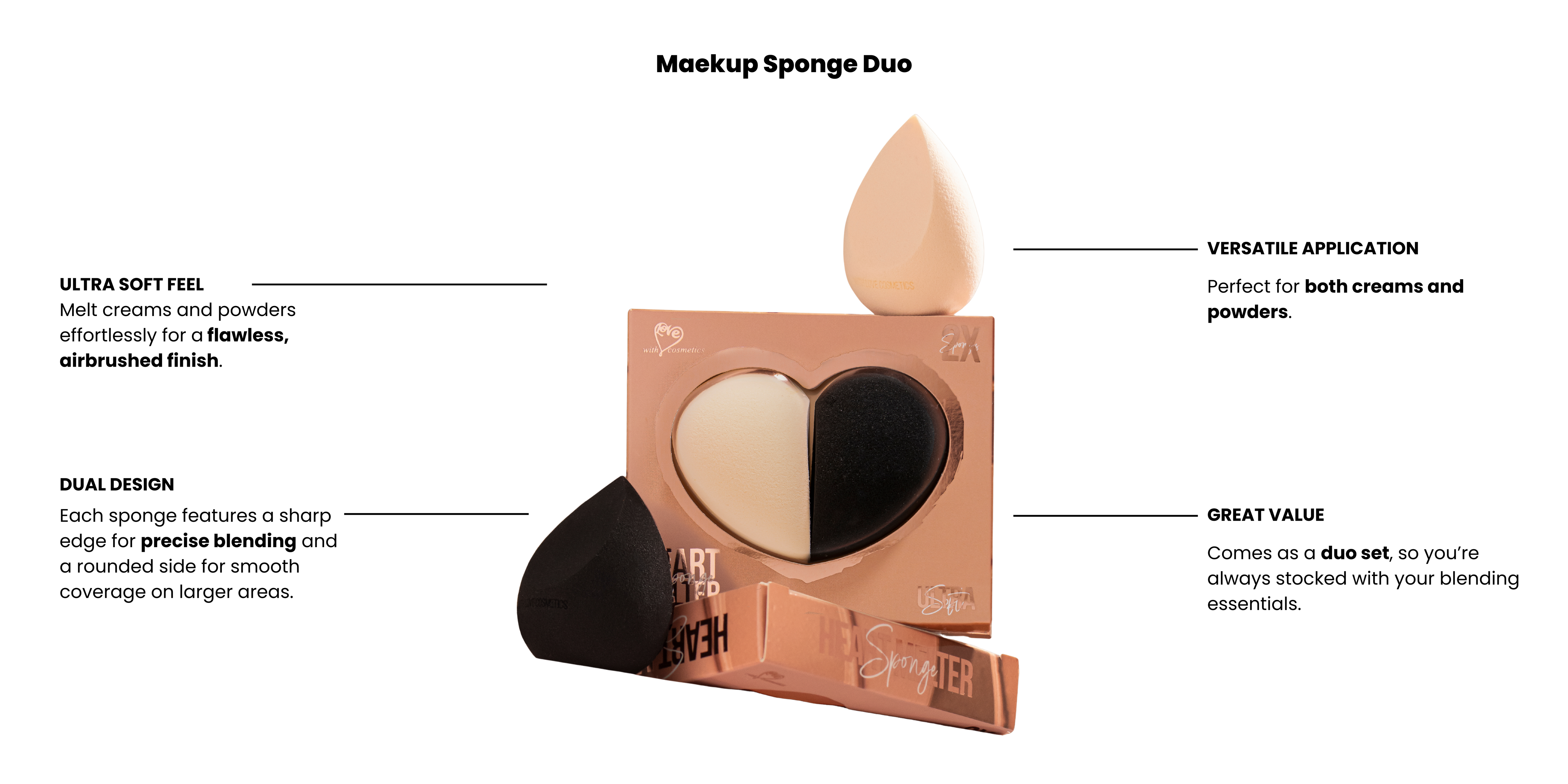 Get ready to fall in love with our Heart Melter Sponge Duo – the softest sponges you’ve ever felt. Designed to effortlessly melt creams and powders for a flawless, airbrushed finish every time.