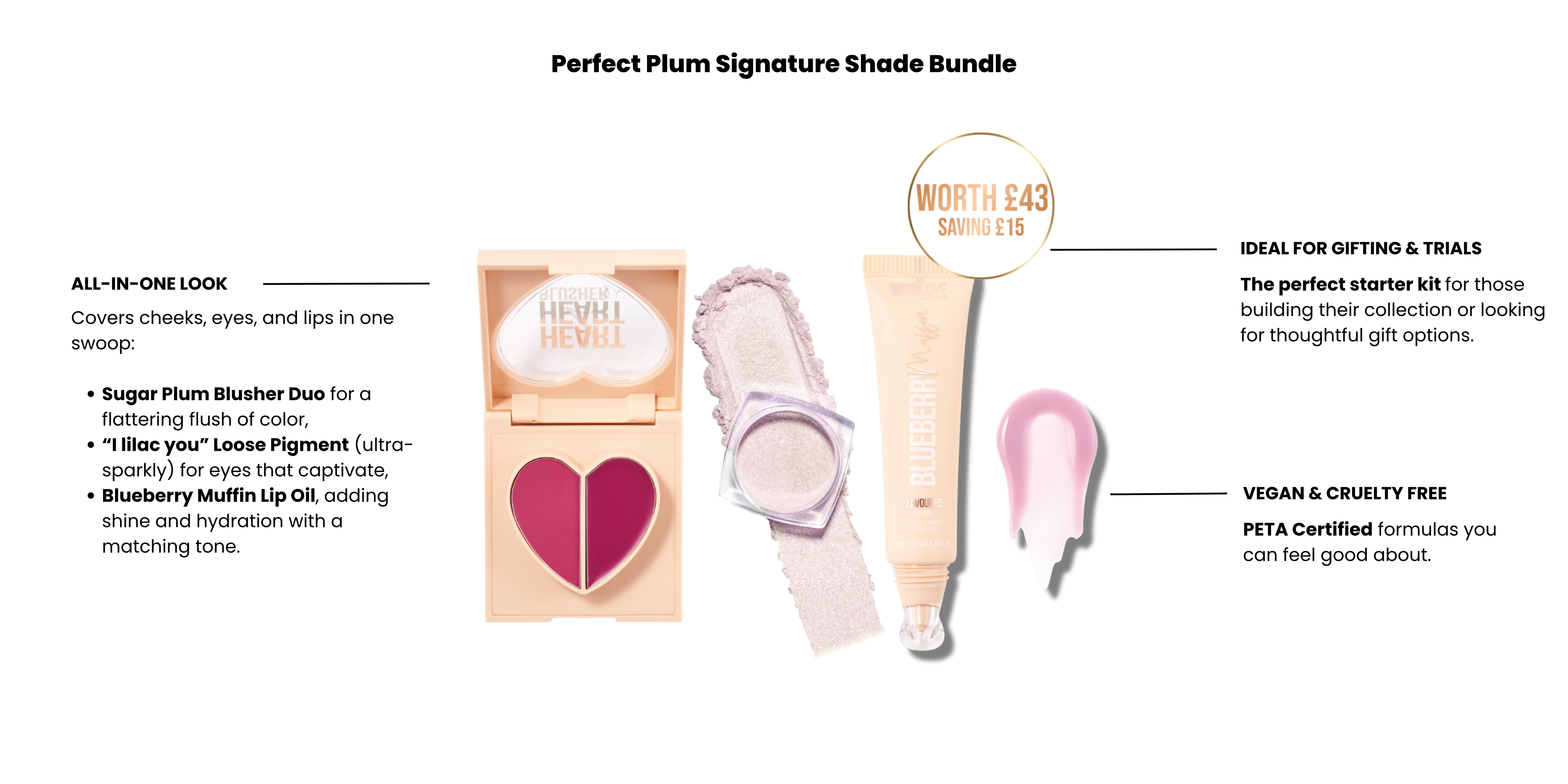Perfect Plum Includes - Sugar Plum Blusher Duo, Blueberry Muffin Lip Oil, i lilac you Loose Pigment
